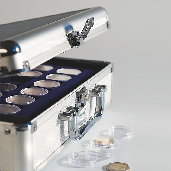 Nuestros estuches para monedas están disponibles en dos tamaños y colores diferentes. Con las bandejas de monedas que lo acompañan, puede adaptar el maletín individualmente a su colección de monedas.