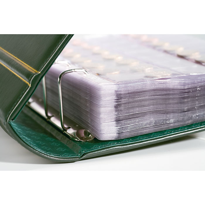 Gracias a la anchura de su lomo de 80 mm, las tapas de álbum VARIO Classic GIGANT ofrecen una capacidad extra grande. Puede acoger hasta 80 hojas VARIO (según el grosor de los documentos) .