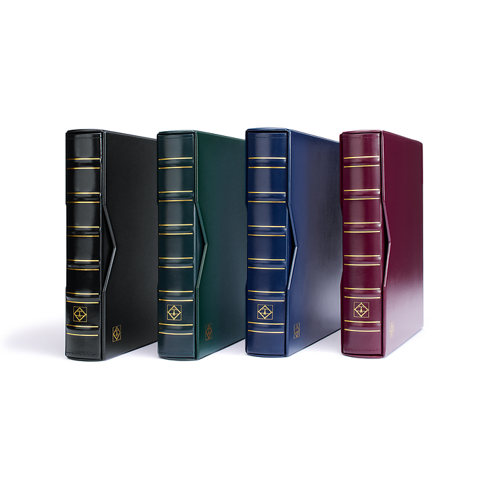 El álbum VARIO Classic con encuadernación en cuero artificial y cajetín protector.