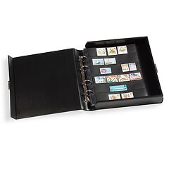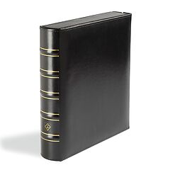 Tapa de anillas de alta calidad en diseño Classic para guardar de forma segura y elegante monedas, billetes, sellos y otros documentos. Para llenar la tapa a su gusto, le ofrecemos una amplia gama de fundas OPTIMA. El cajetín protector integrado con cerradura protege de forma segura sus objetos de coleccionismo del polvo y de la suciedad. Con una elaborada y elegante encuadernación en imitación a cuero y con un resistente mecanismo de 4 anillas. Capacidad: hasta 60 hojas OPTIMA ó 15 hojas OPTIMA para monedas. Color negro. Formato exterior: 250 x 55 x 275 mm. No incluye hojas.