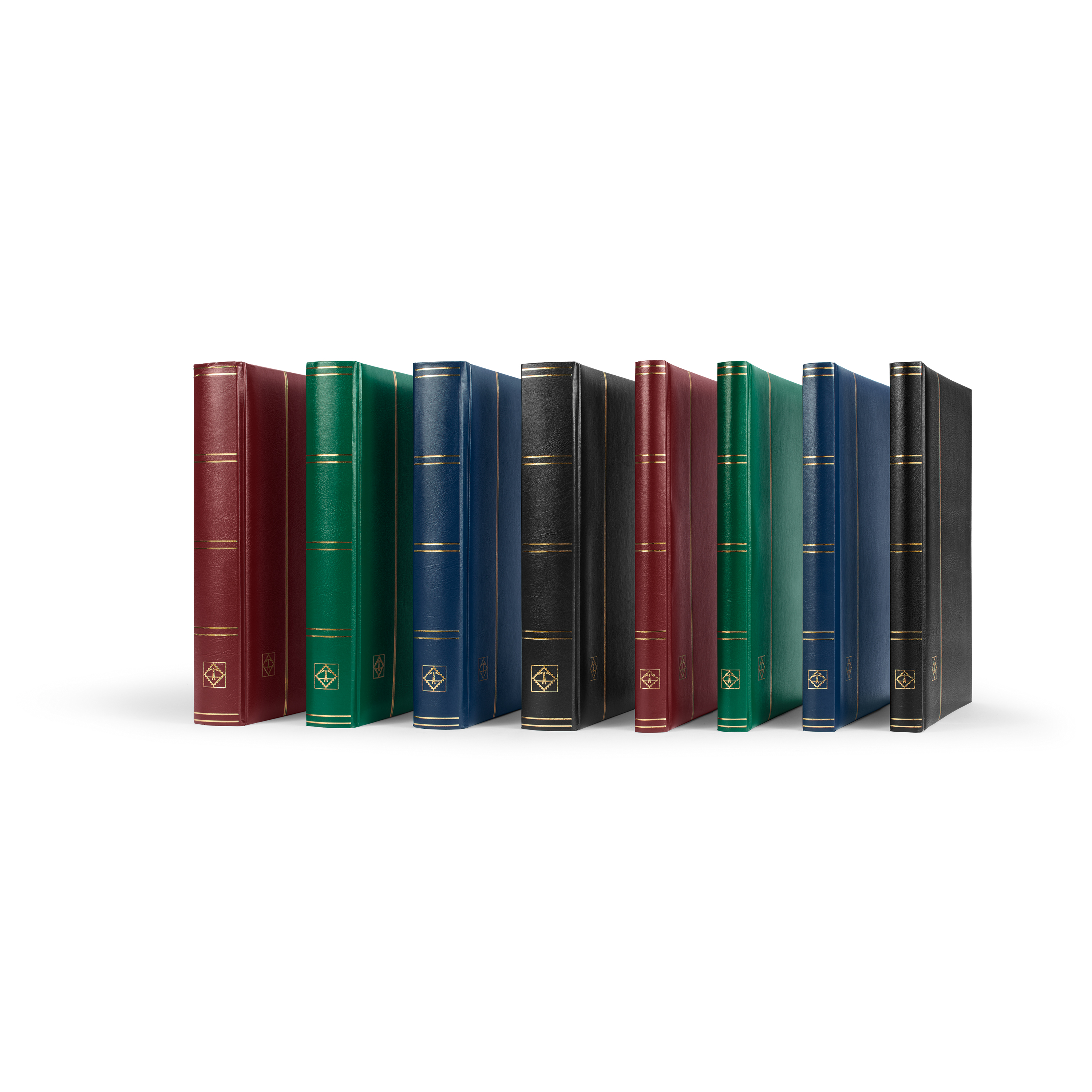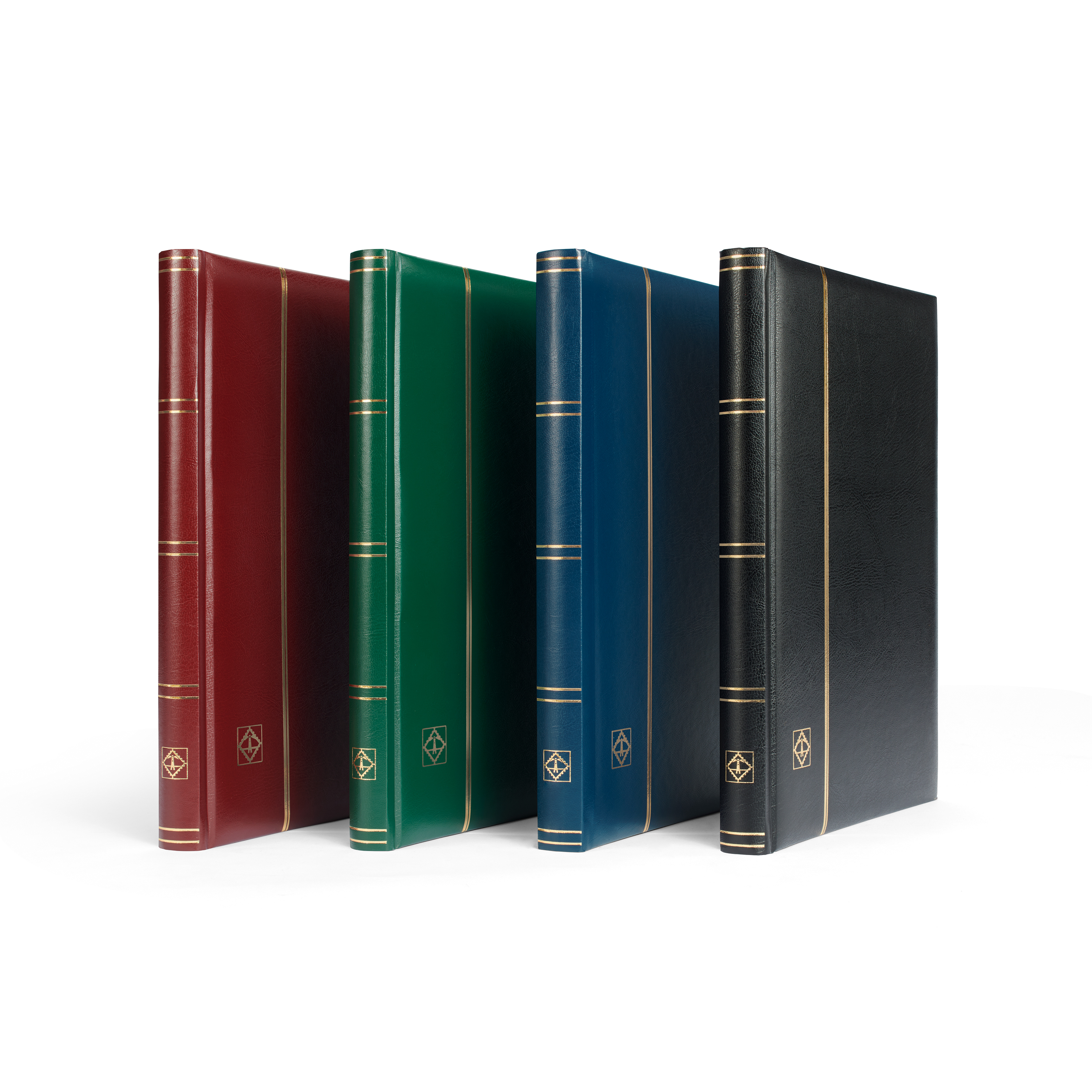 Este clasificador tiene 32 ó 64 páginas negras y tapas acolchadas en imitación a cuero. Contiene 9 bandas de papel cristal por página, hojas separadoras dobles de brillantina y encuadernación de doble articulación.