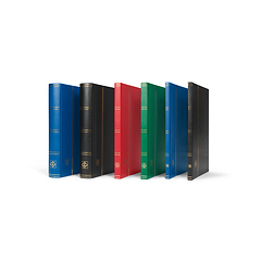 Clasificador BASIC con páginas blancas, tapas no acolchadas, bandas de papel cristal y hojas separadoras de papel cristal.