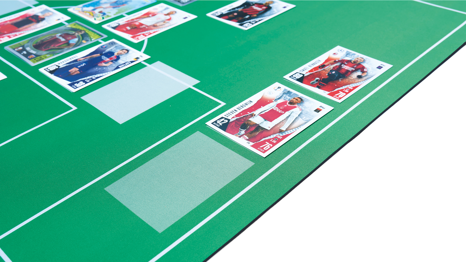 Tanto para jugadores como para coleccionistas de cromos de fútbol. Álbumes de coleccionista con una ventana para tu carta favorita, una caja de baraja con separadores, fundas y hojas para proteger las codiciadas cartas y dos tapetes de juego.