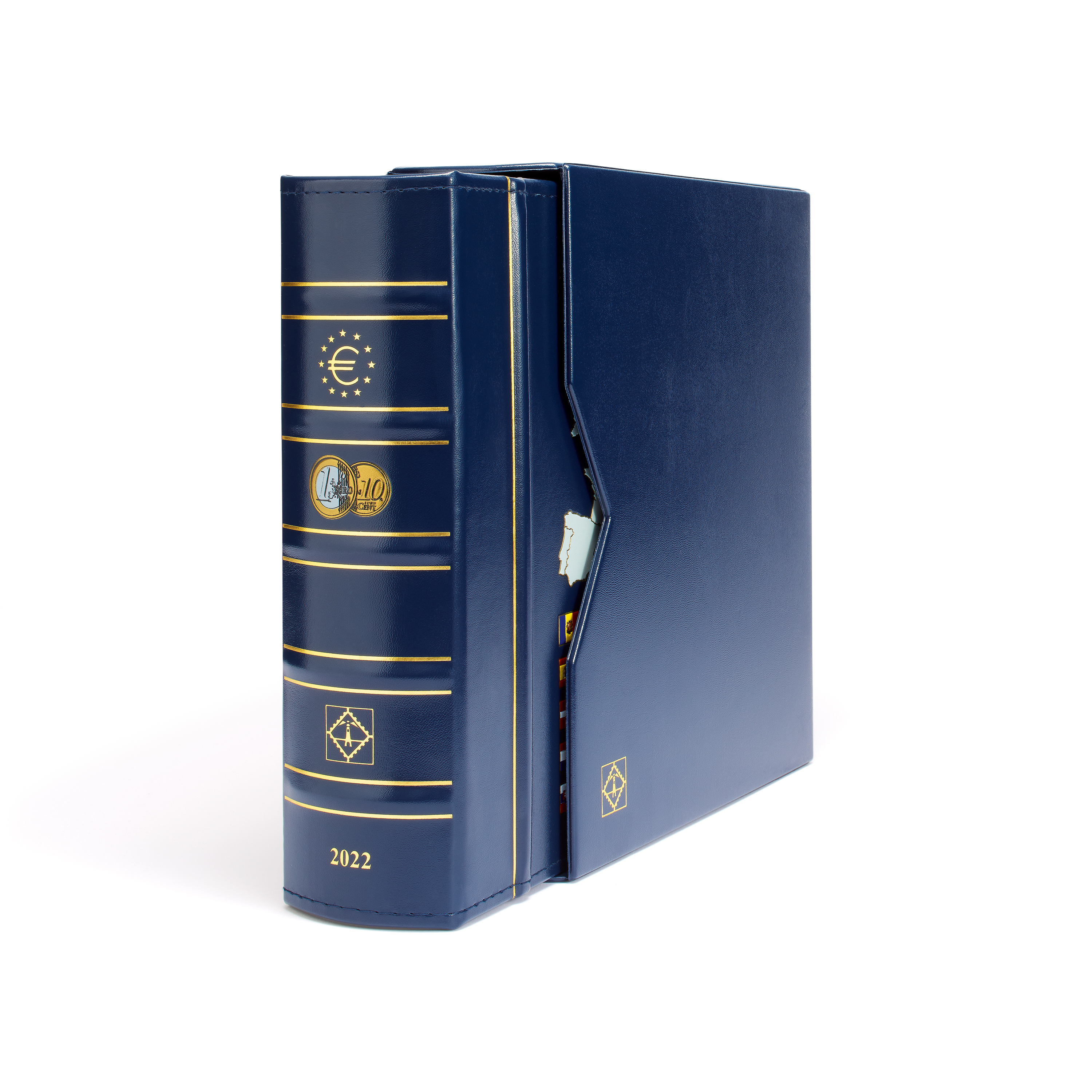 Vista álbum anual para monedas de Euro 2022, con cajetín protector, azul