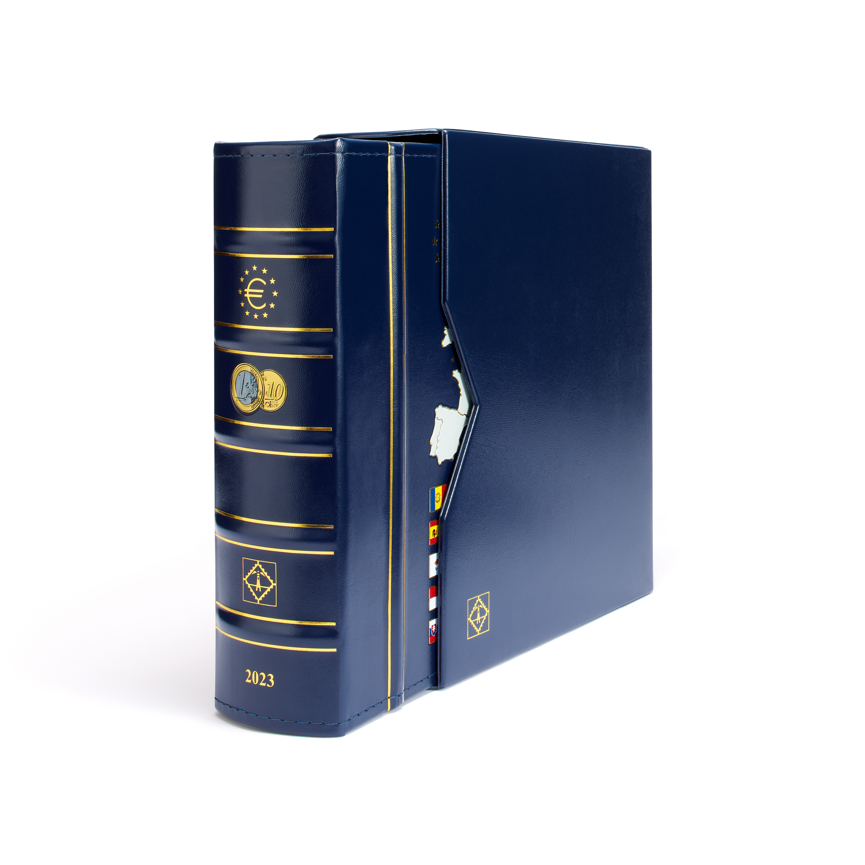 Vista álbum anual para monedas de Euro 2023, con cajetín protector, azul