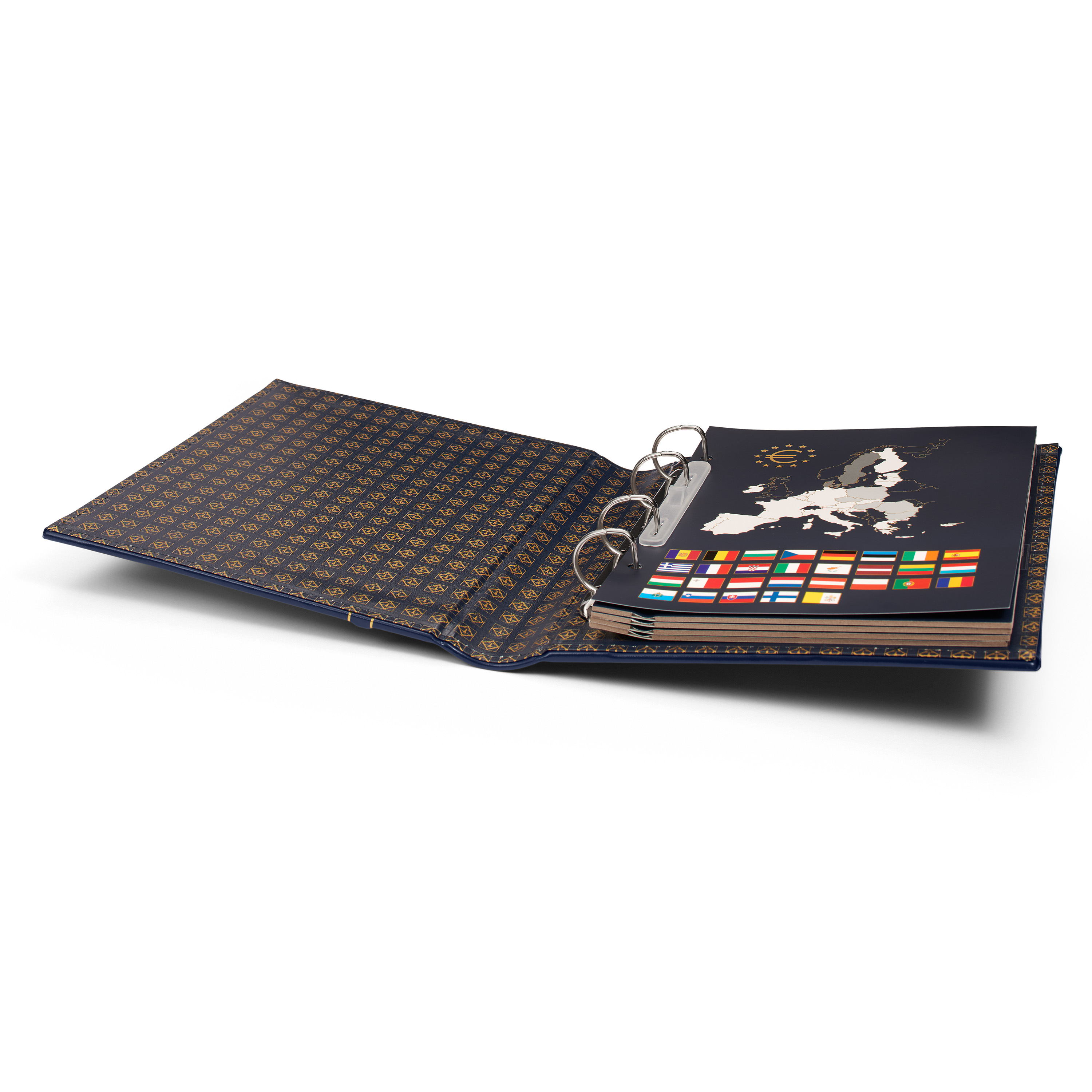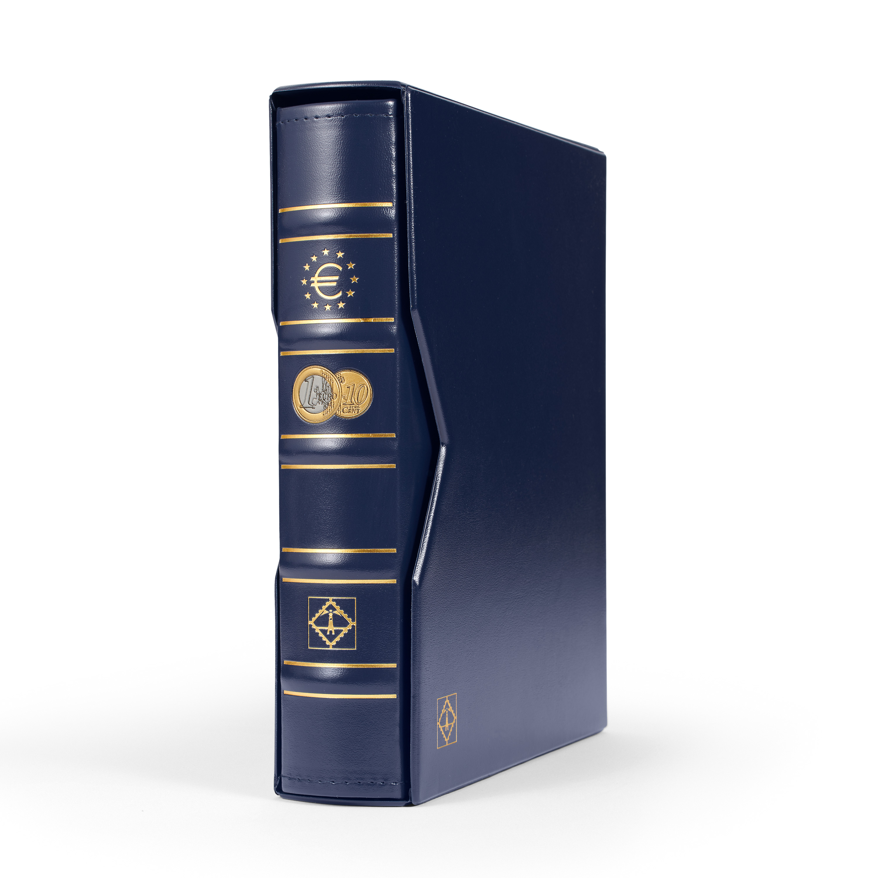 Ringbinder in buchbinderischer Verarbeitung. Edler Kunstledereinband mit eindrucksvoller Rücken- und Deckelprägung (im Schutzkarton). Aufbewahrung der Münzen in allen VISTA- oder OPTIMA-Münzhüllen möglich (Hüllen nicht im Lieferumfang enthalten). Das Albu
