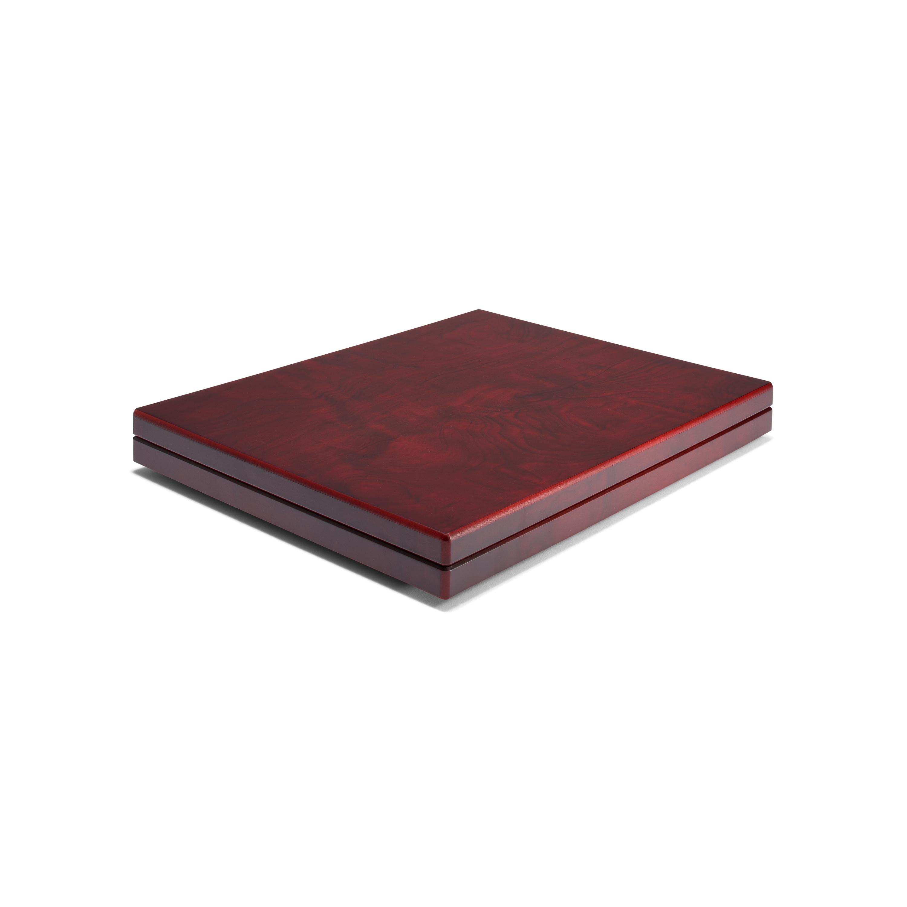 Estuche VOLTERRA TRIO de Luxe de color caoba con una bandeja. Tapa interior de raso negro. Una bandeja con superficie aterciopelada de color negro con 20 divisiones cuadradas (50x50 mm) de color negro para 20 monedas. Particularmente resistente gracias a las dos bisagras doradas.