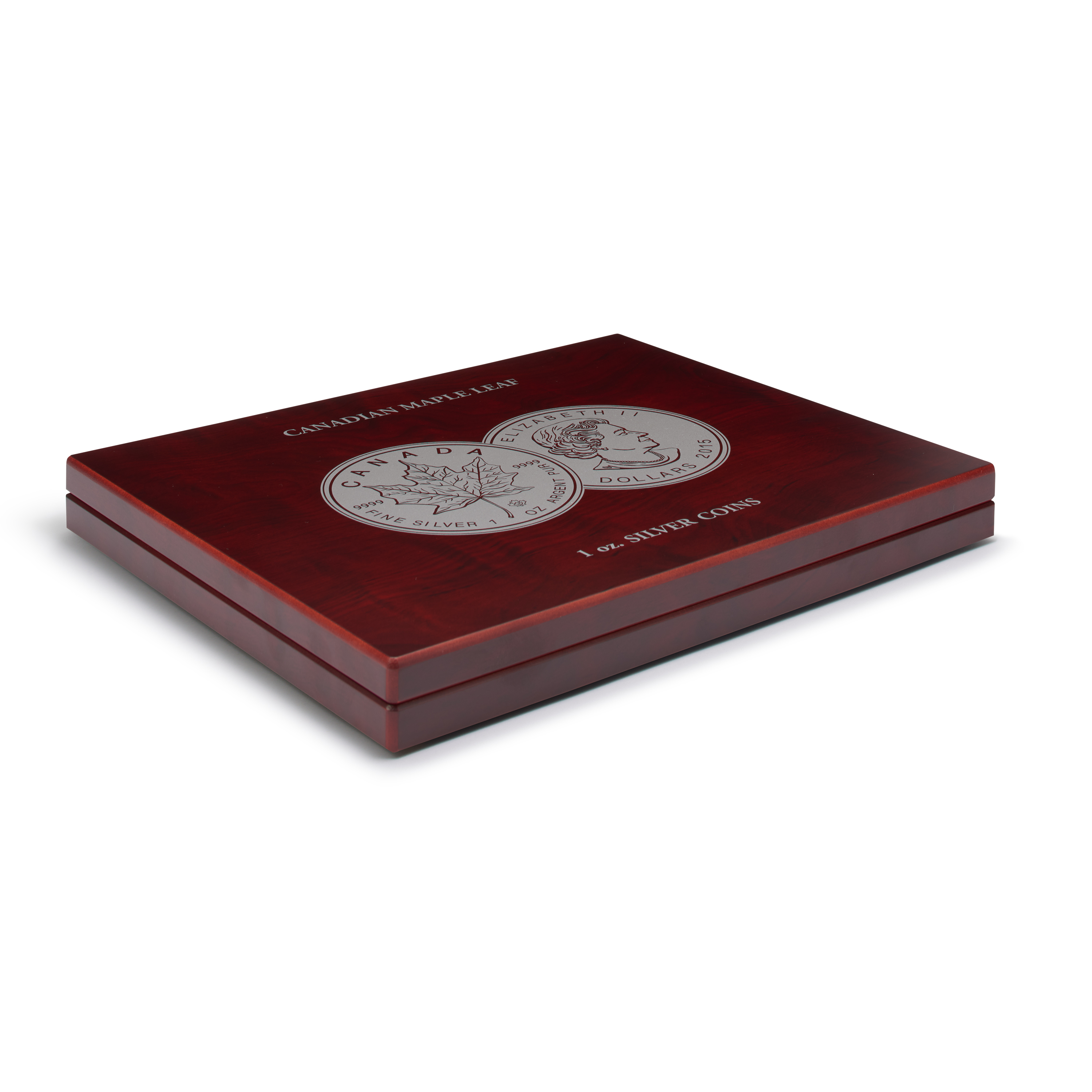 Volterra Uno - Estuches para 20 monedas de plata «Maple Leaf» en cápsulas, caoba